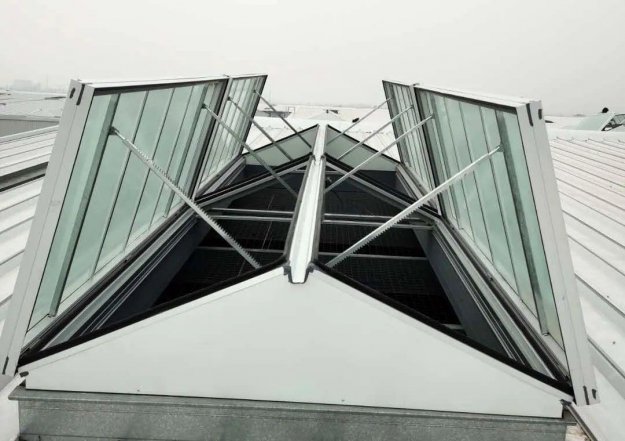 三角型通風天窗最大開啟角度為66°,結構穩定,不易變形。同時這種結構也不利于雨雪堆積,適用于高溫多煙、濕潤多雨的環境。